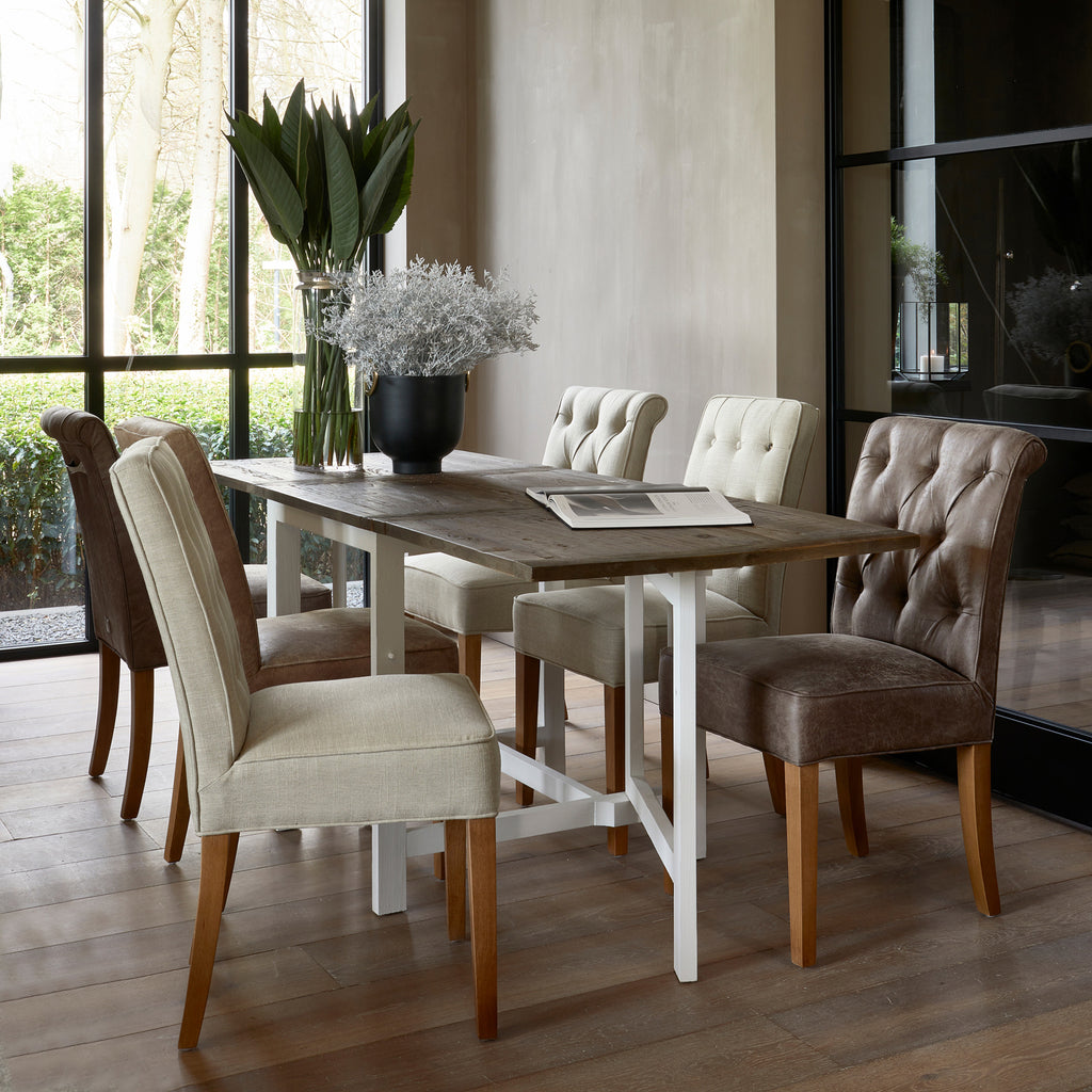 Comfortable dining chair with a classic elegance and a convenient hook on the back. Available in various colours of linen... Lees meer Lees meer